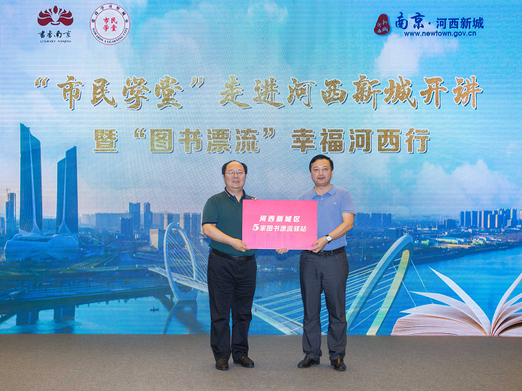 活动现场还举行了“图书漂流驿站”书架和图书捐赠仪式,南京广电集团党委委员、南京广播电视台副台长谢海翔向河西管委会赠送“图书漂流驿站”援建图书及书架,河西管委会办公室王建平同志代表管委会接受捐赠。这批“图书漂流”驿站分别进驻南京国际博览会议中心、南京青年国际会议中心、以及金陵江滨酒店等5处河西新城的地标建筑,每个驿站书架上,摆放了200多本漂流图书供市民免费借阅。