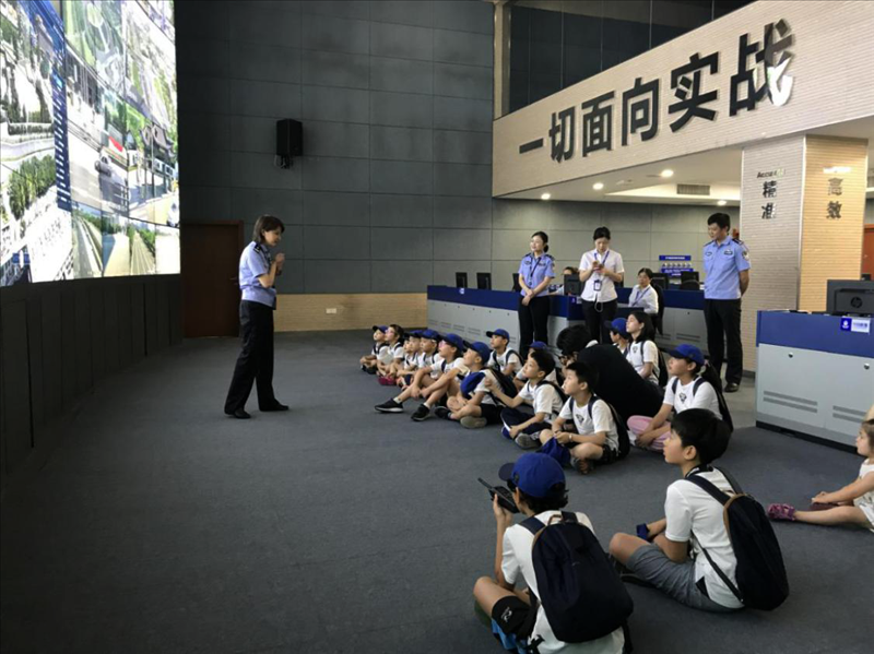 活动第一项内容,小住客们参观了分局境外人员管理服务中心,民警向孩子们介绍了签证办理等各项便利服务功能;活动第二项内容,在指挥中心,民警现场展示运用高科技手段实现对本区全覆盖、无死角的实时监控,演示了分局指挥决策系统的强大功能;活动第三项内容,在巡特警大队,孩子们参观警用车辆,近距离地观看、触摸特警装备。民警通过实际操作演练的方式,生动详细的介绍各种装备、器械的使用方法和功能。