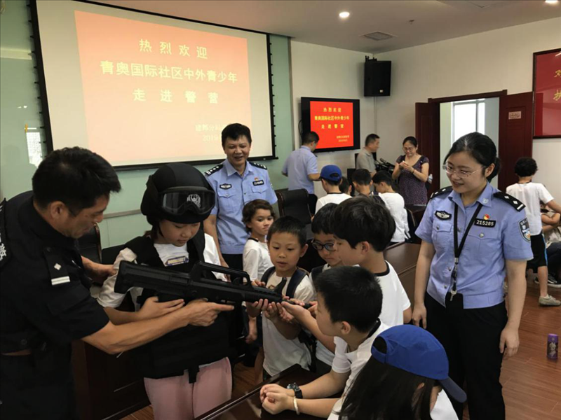 8月24日上午,青奥国际社区与建邺公安分局联合开展“中外青少年走进警营”主题交流活动,让国际社区的小住客们零距离感受建邺警方的风采。