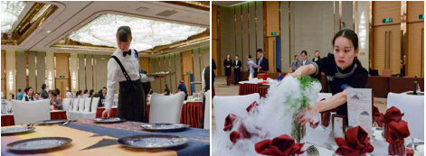 在各成员酒店各级领导的支持下,经过一个多月紧锣密鼓的演练和层层选拔,来自国际青年会议酒店、南京国际博览会议中心、南京卓美亚酒店、金帆万源酒店、东台黄海森林酒店及水墨年华温泉民宿项目的参赛选手顺利进入决赛。