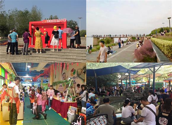 绿博园挖掘设施资源,提升服务经营,“我和国旗合个影”展牌成了国庆网红;学生绘画、团队摄影、沙趣嬉戏;青年文化公园以南京江景地标再次上了央视直播,园内养管精细,水清路洁,夜游与白天一样热闹;鱼嘴公园夕阳摄影、网红灯塔、生态湿地,游人如织;生态(中央)公园城市绿厅、休闲赏景,尽显城市生态之美;滨河公园水岸阳台、绿道彩桥,美景乍现。