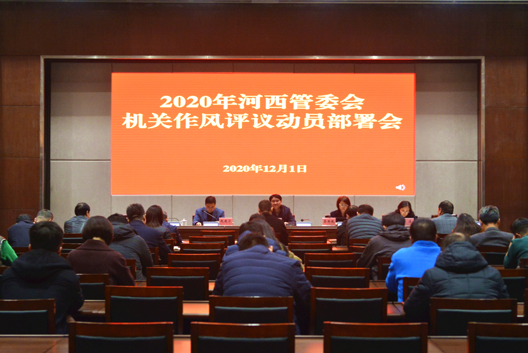 12月1日,河西管委会召开机关作风评议动员部署会议,对2020年度处室作风评议以及机关作风建设满意度评议工作进行动员和部署。党组成员、副主任吴冬霖出席会议并讲话。党组成员、纪检组组长赵建宁主持会议。党组成员、副主任蔡国峻,党组成员、副主任陈洁出席会议。管委会全体机关干部参加会议。