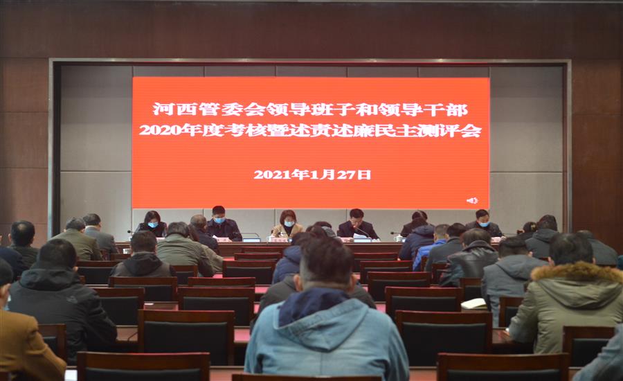 1月27日, 河西管委会召开领导班子和领导干部2020年度考核暨选人用人“一报告两评议”及述责述廉民主测评会。建邺区委书记、区长,市河西管委会主任、党组书记李晖主持会议,市委组织部干部监督处夏娟副处长出席会议,管委会全体干部参加会议。