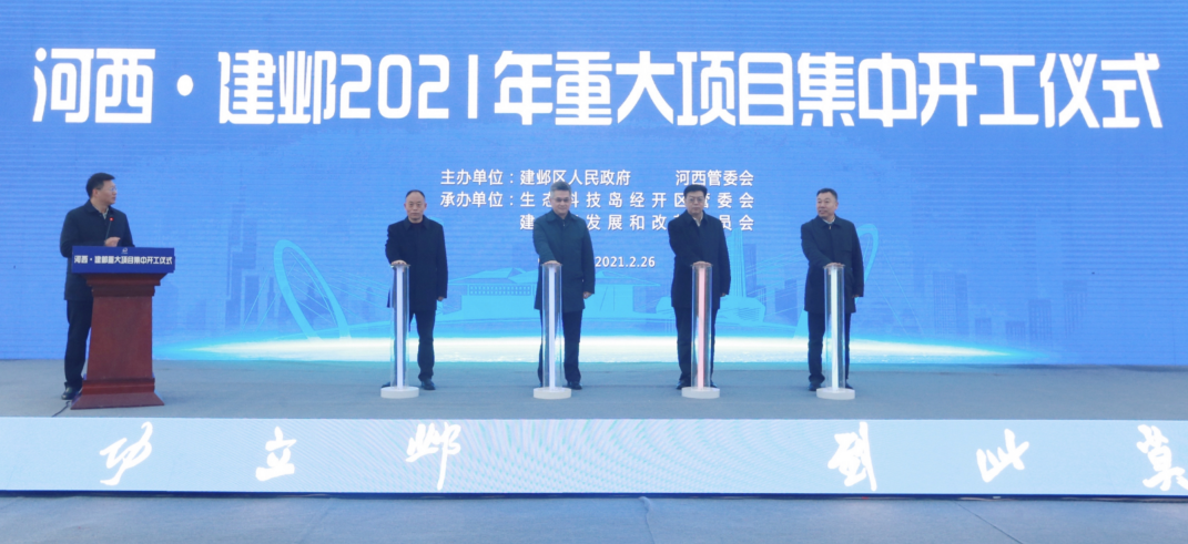 2月26日,河西•建邺2021年重大项目集中开工仪式在生态科技岛隆重举行。此次10个项目的集中开工,总投资87.69亿元,打响了河西·建邺新一年重大项目建设的“发令枪”,既是坚持“项目为王,实干为先”理念的集中展示,更是筑牢经济发展“压舱石”,为“十四五”开了好局,迈起了坚实的第一步。南京市政府副市长沈剑荣出席活动,建邺区委书记、市河西管委会主任、党组书记李晖致辞。市河西管委会、建邺区四套班子领导、相关部门负责人及建设单位代表参加活动。