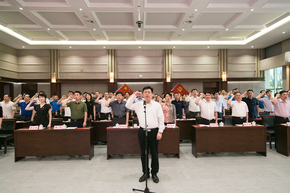 大会现场,在党组书记李晖同志的带领下,管委会全体党员重温入党誓词,号召大家始终铭记入党誓词,不忘初心、牢记使命,接续奋斗、砥砺前行。