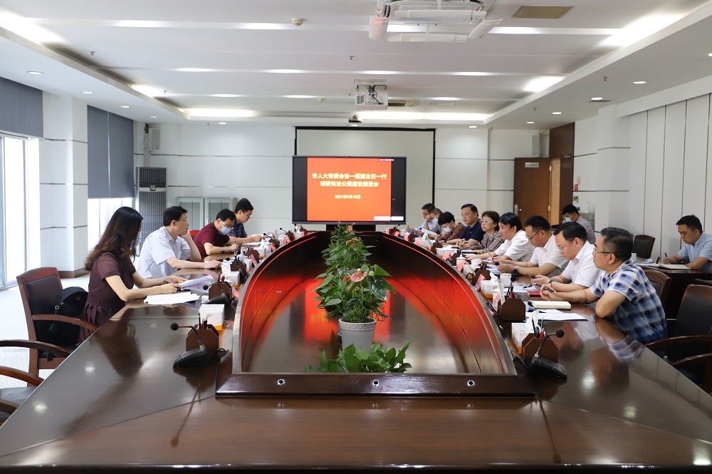 在调研交流中,蔡国峻副主任汇报了宪法公园前期工作进展和存在问题,何流总经理汇报了项目建设推进情况。