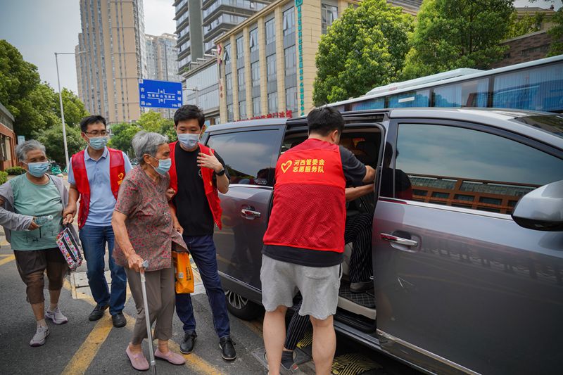 随后,机关二支部党员志愿者还穿上红马甲,在炎炎烈日下,踏上街头、登上疫苗接种流动车,向过往群众宣传疫情防控知识,询问疫苗接种情况,为当天参与接种的行动不便群众提供搀扶、留观、送返等服务。接种现场有3位80岁以上老人年事已高、行动不便,志愿者们积极配合社区工作人员护送3位老人返回住所,受到老人及其家人的一致赞扬和肯定。