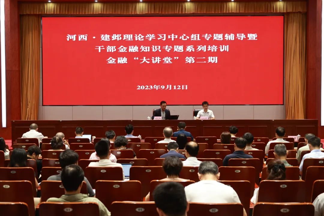 9月12日,河西·建邺理论学习中心组专题辅导暨干部金融知识专题系列培训金融“大讲堂”第二期正式开讲。区四套班子领导、河西管委会领导班子成员,相关部门、街道、园区、区属国企主要负责同志、部分区人大代表、政协委员、企业高管参加。