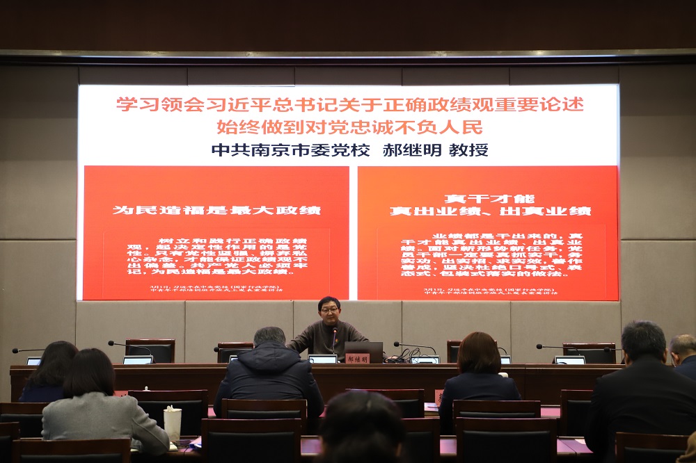 本次党员培训的第一课,邀请到南京市委党校郝继明教授,就树立和践行正确政绩观专题为全体党员作辅导。郝教授重点对习近平总书记关于树立和践行正确政绩观的历次重要讲话精神进行解读,介绍了正确政绩观的内涵和重要性,详细阐述习近平总书记关于树牢造福人民的政绩观的核心要义,同时结合正反两方面事例,提醒我们时刻保持清醒头脑,不盲目追求政绩,并就如何贯彻好落实好提出建议与思考。