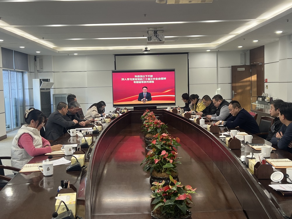 在最后进行的主题党日活动中,与会党员共同观看了中央党校党史部第三教研室副主任、教授沈传亮主讲的《深入学习贯彻习近平总书记关于全面深化改革的一系列新思想、新观点、新论断和党的二十届三中全会精神》视频课程。许敬、梁成、成惠茹三名同志,结合课程学习内容进行了交流发言。