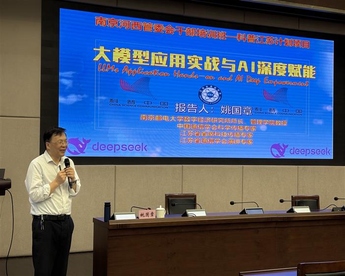 为进一步提升干部履职能力,推动智能化办公水平提质增效, 9月25日,管委会举办《大模型应用实战与 AI 深度赋能》专题讲座。活动特邀南京邮电大学数字经济研究所所长、管理学院教授姚国章作主题分享。