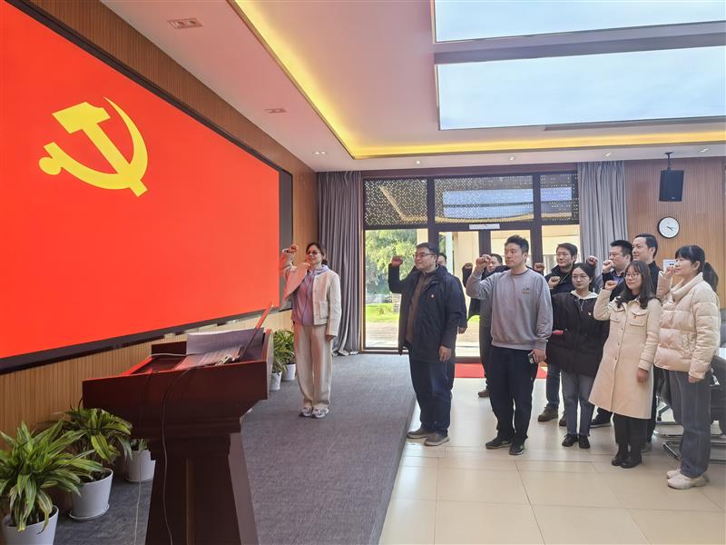 随后,支部开展了新发展党员入党宣誓仪式暨老党员重温入党誓词活动。支部推选入党介绍人、老党员袁江同志为预备党员洒砚华同志佩戴党员徽章,全体党员整齐列队,举起右手,紧握拳头,面向鲜红的党旗庄严宣誓,牢记共产党员这一光荣称号。