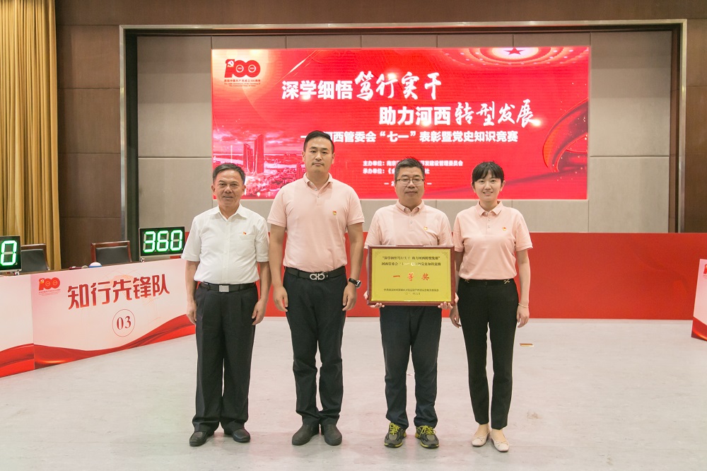 一百年的风雨兼程,铸就了华夏儿女不屈的脊梁,一百年的上下求索,迎来了中华民族复兴的曙光。在中国共产党成立100周年之际,在“两个一百年”奋斗目标历史交汇的关键节点,为回顾和总结我党百年来的奋斗历程,激发全体干部职工干事创业的热情,为高标准加快建设现代化国际性城市中心,聚焦东部地区重要金融中心建设注入新的强大动力,6月28日,河西管委会举办了以“深学细悟笃行实干 助力河西转型发展”为主题的“七一”表彰暨党史知识竞赛。