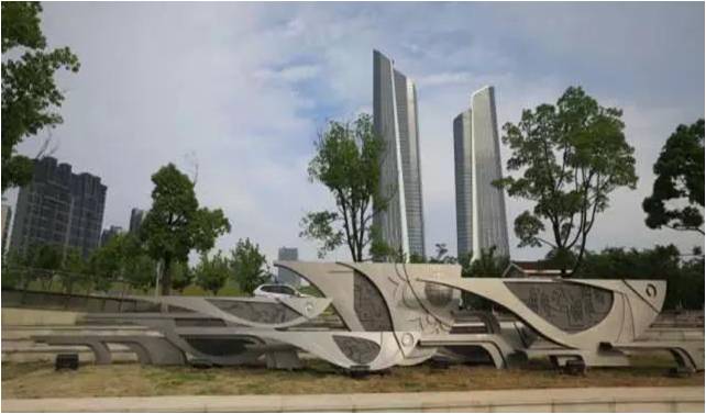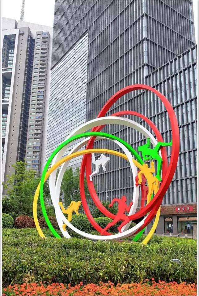 《活力都市》的钢构绿雕彰显出运动的矫健身姿,搏击的长剑、漫步的音乐、冰雪上的舞动,动感的人物诠释出建邺活力多姿的精彩。