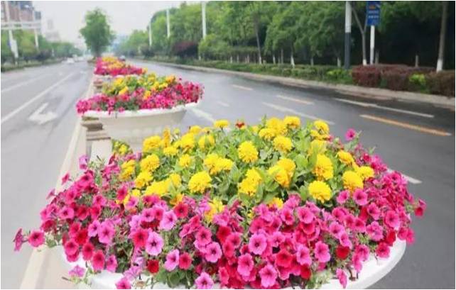 建邺区干道进行了彩化。鲜艳的色彩、丰富的层次,让视觉更明艳。混合的花境,分分钟提升了“气质”!