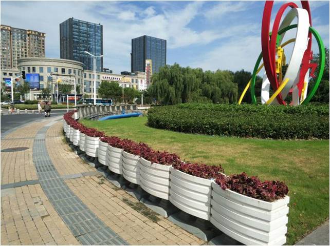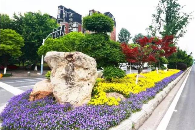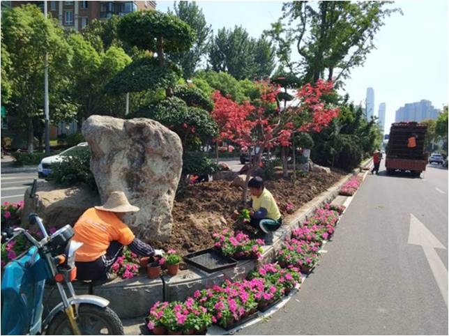 重点道路中分带路口布置草花,扮靓了道路环境,为河西建邺披上了节日的盛装。