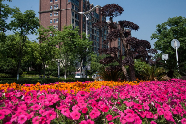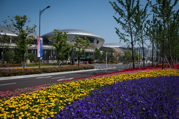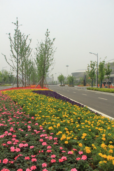 5月20日首届江苏发展大会正式拉开帷幕,美丽的南京正以崭新的面貌,饱满的热情,迎接海内外嘉宾的到来。作为主会场所在地南京河西,早已是芳草依依,鸟语花香。河西管委会按照"隆重、热烈、务实、简朴"的要求,布置草花总面积17000平方米,草花品种多种多样,有一串红、孔雀草、矮牵牛、石竹、美女樱、百日草等,道路两旁、林荫树下,各色花草铺满了每条道路,微风吹过,仿佛空气中都弥漫着花香。