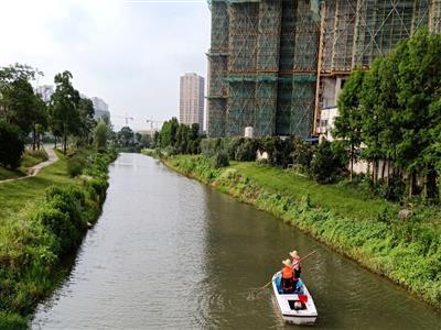 2017年4月,管委会委托新城公司对河西南部地区13条河道进行临时管养。新城公司购置保洁船、安排专业队伍,做好河道及岸坡的巡查、保洁工作,发现问题及时上报,配合相关单位开展违规排放行政执法及河道占用手续办理工作,为营造南部优美生态环境贡献力量。