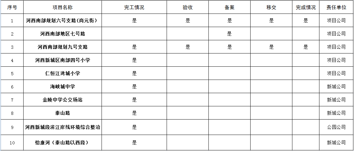 2017年10月完工项目统计表