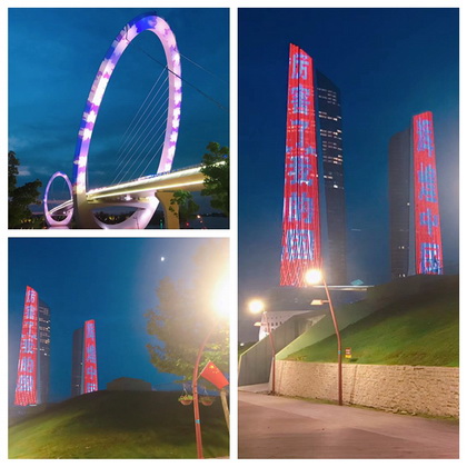 为庆祝祖国68周年华诞,欢度中秋佳节,喜迎党的十九大胜利召开,滨江公园对园区进行了精心装扮,积极营造绚丽喜庆、文明祥和的节日气氛。