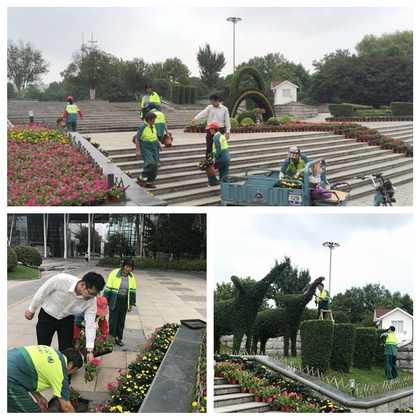 一是在各园区主要出入口、重点区域、特色景点布置、摆放国庆菊、一串红、矮牵牛等各色花卉,共计10万余盆。今年国庆,滨江公园花卉摆放别出心裁,采用多种样式,既有景观花架、花卉垂盆、各色花箱,更有蠢萌可爱的动植物绿雕,将园区装扮的生机盎然,营造出喜庆祥和的节日氛围。