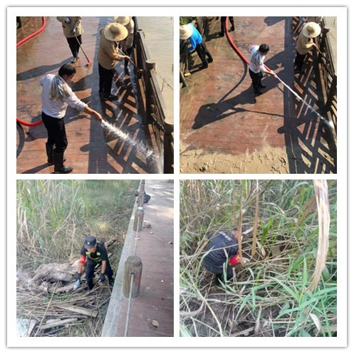 期间,各公园管理中心保洁联动绿化、保安加大沿江区域上游冲刷来的生活垃圾的清理力度,每日安排30人次左右,上下午各清理一次,截止目前仅鱼嘴湿地区域共计清理垃圾多达上百袋(100*120垃圾袋)。另外,各公园对园区内栈道进行冲洗修复、落叶清扫、断枝清理工作,争取确保安全、卫生的情况下沿江绿道、湿地栈道早日对游客开放。