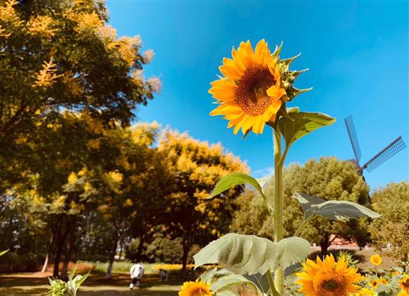 如此美景,是欣赏异域美景、了解荷兰风情的绝好时机。此轮向日葵是公园管理公司按照国庆节日氛围营造的计划,二次栽种的精品向日葵。园艺工人们精心养护这些花朵,调控水分、养分的供给,力争将花期延续到国庆节期间,为庆祝新中国成立70周年添彩!