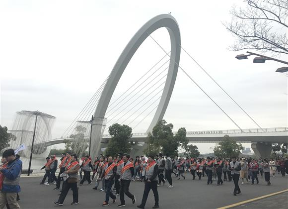 活动现场的百余名志愿者穿着印有“护河志愿者”的背心,沿着美丽的河西滨江风光带绿道,一路步行至鱼嘴湿地公园,用实际行动积极践行“节水优先、空间均衡、系统治理、两手发力”的治水方针,为建设节水型社会出一份力。
