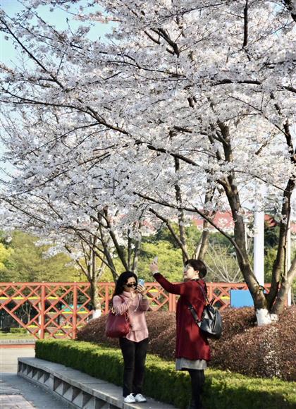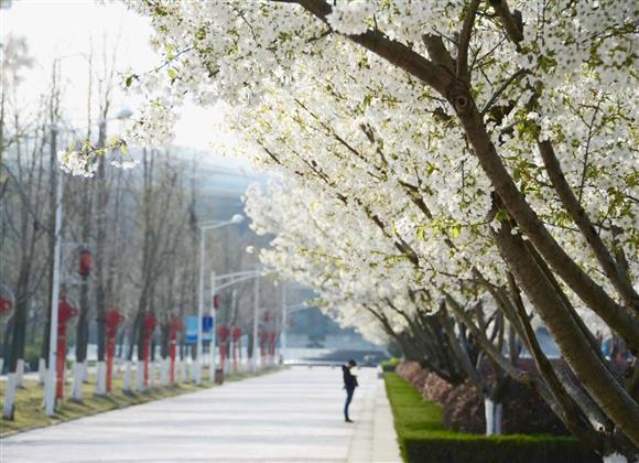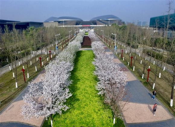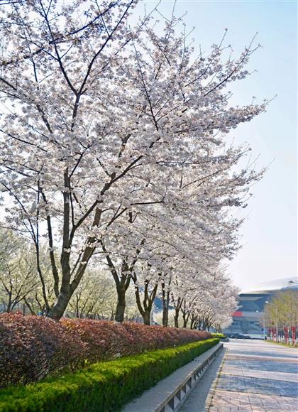 “春樱花秋银杏”大道两侧的数百株樱花近日已进入盛花期,与周围的奥体中心、金陵图书馆、江苏省大剧院等大型现代建筑交相辉映,共同构成了河西建邺现代化城市中心的魅力画卷。