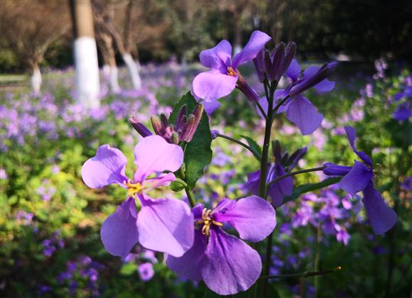 二月里春风来,滨江公园(绿博园)里,处处能看到绚烂迷人的蓝紫色。走在林荫下、园路间,江岸边,处处弥漫着一股油菜花般的香味;一眼望去,是一片片迷人的蓝紫色。对了,她就是二月兰!
