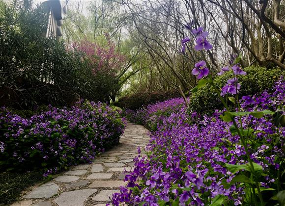 滨江公园(绿博园)一直十分注重花卉色系的打造,用不同的色彩丰富公园的景观和生机,蓝紫色就是重要的色系之一。当下的蓝紫色花卉很多,以二月兰为主基调,紫花地丁、婆婆纳、迷迭香等也在争相开放,还有木本的紫荆花、紫玉兰、紫花泡桐、紫丁香等次第开放。