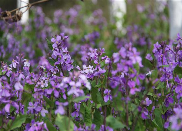二月兰又名诸葛菜(拉丁学名:Orychophragmus violaceus)别称:二月蓝,十字花科诸葛菜属,一年或二年生草本。因农历二月前后开始开蓝紫色花,故称二月蓝。生长于平原、山地、路旁、地边。对土壤光照等条件要求较低,耐寒旱,生命力顽强。(来源:百度百科)