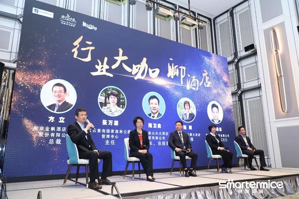 在“行业大咖聊酒店”环节中,金帆公司总裁方立先生、江苏黄海森林公园管理中心主任张万源女士、江苏省山水大酒店集团有限公司董事长及总经理隆卫良先生、南京熊猫金陵大酒店总经理陈辉女士、南京慧旅会展有限公司创始人兼CEO施晓东先生5位大咖热烈讨论,分享他们的真知灼见,从不同维度讨论酒店发展前景。