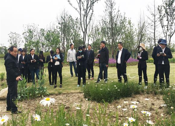 周忠胜副总经理就园林绿化景观建造、养护管理、花境花带布置等内容,结合现场给参训人员作了详细讲解。