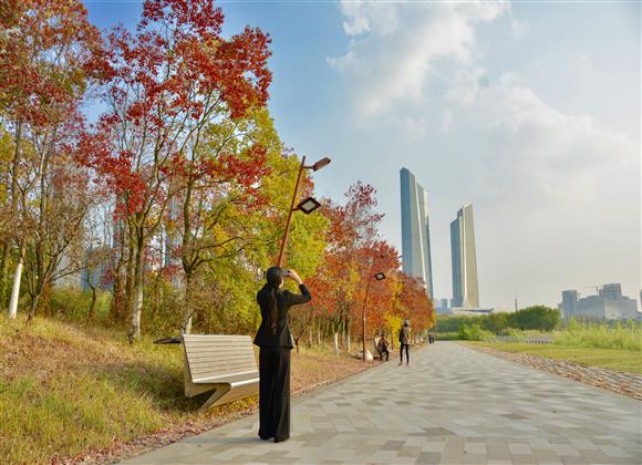 秋到金陵滨江畔 画里河西醉游人——河西滨江风光带彩化林带建设成果初显