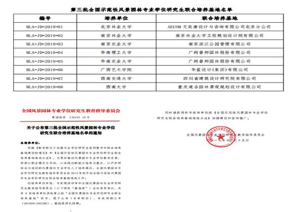 与南京农业大学联合申报,经全国风景园林专业学位研究生教育指导委员会遴选,2019年11月15日,南京滨江公园管理有限公司成功获第三批“全国风景园林专业学位研究生联合培养基地”称号。