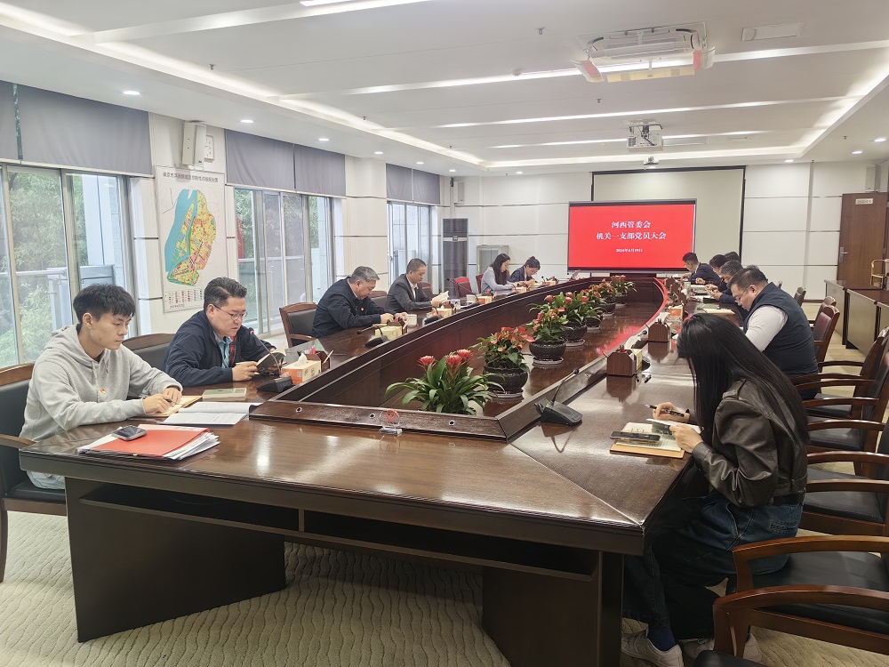 会议共两项议程。首先由支部书记许敬传达了《关于在河西管委会党员干部中开展党纪学习教育的工作方案》,梁成、成惠茹、方红宇、魏学融等四名委员,分别领学了《中国共产党纪律处分条例》第一、二、三章原文,《中国共产党党员网络行为规定》等内容。