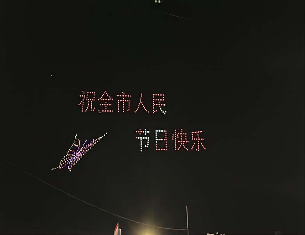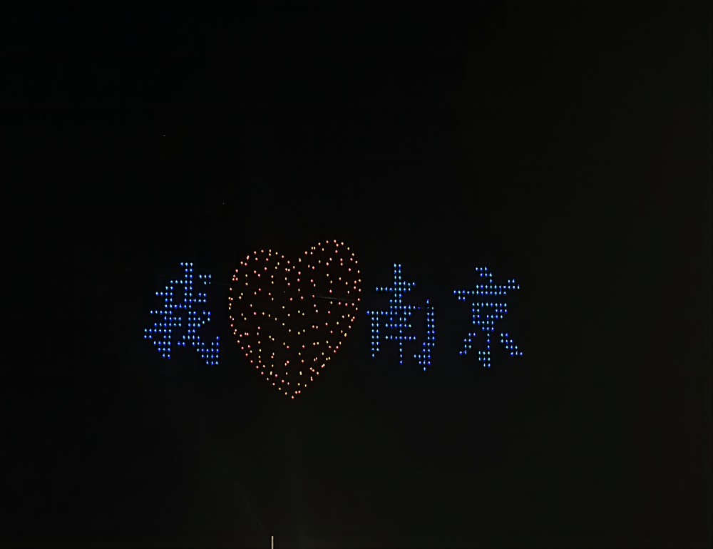 以夜空为画布,以灯光为画笔,上百架无人机按设定程序在空中绘制出一幅幅美丽的光影画卷,生动再现了南京眼步行桥、青奥双子塔、奥体中心、江苏大剧院、南京金融城等特色建筑,展现了元通顶流商圈打造、低空经济领航发展、数字经济高地崛起等发展成绩,同时也向全市人民致以最诚挚的节日问候。