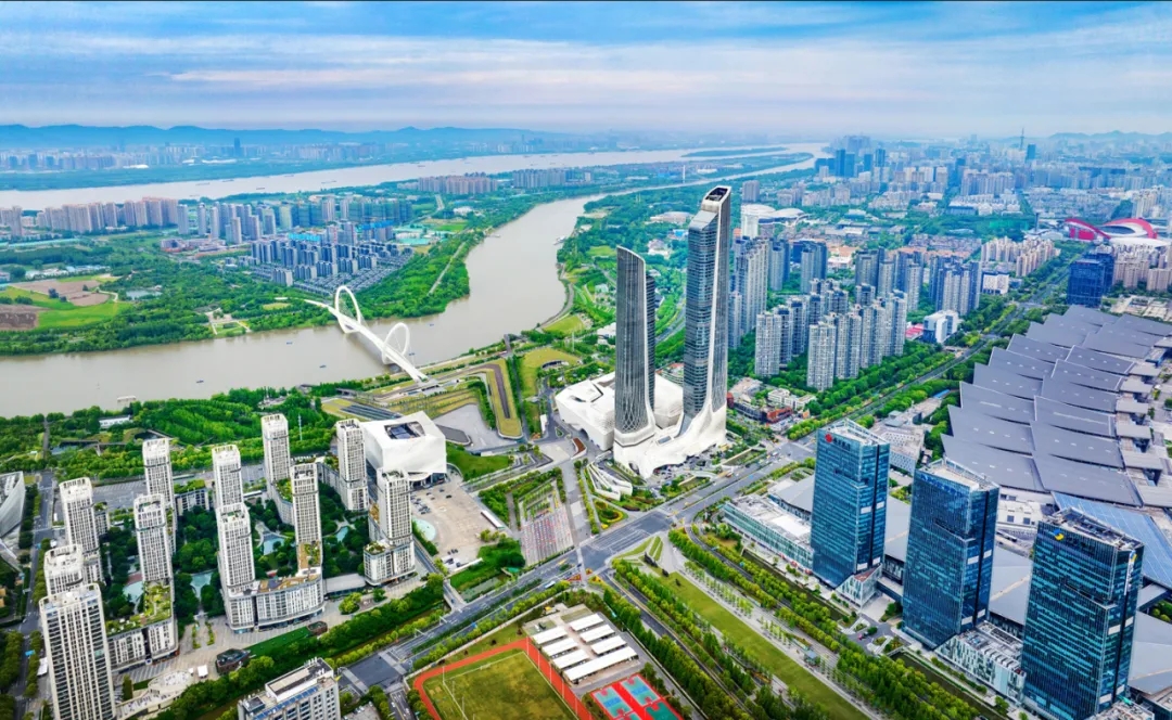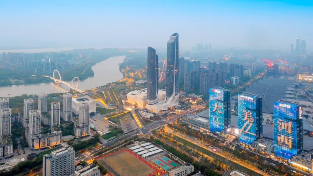 谷文俊《俯瞰河西》、顾 涛《滨江掠影》、胡程阳《再见2023》
