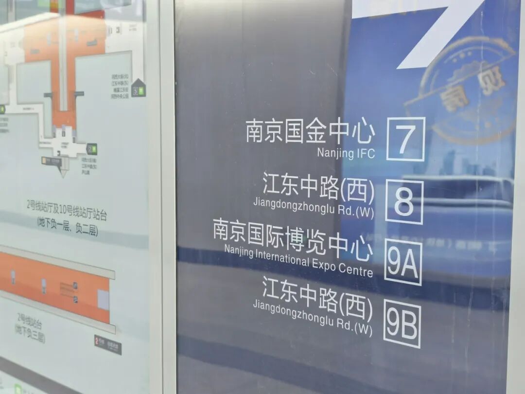 以市民从西侧南京国际博览中心前往东侧国金中心的路线为例,如今,大家只需从就近的9A口进入地下通道,再从7号口出站,就能直达国金中心地面一层。对于到国金中心通勤或购物的人群而言,便利则更多一层——可直接从地面7号口进入地铁站,不必再从商场负一楼绕行,步行距离大幅缩短。