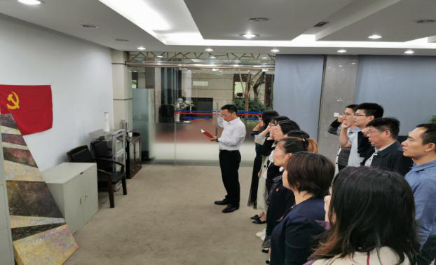 机关第三党支部全体党员会上重温了入党誓词,面对鲜红的党旗,郑重举起右手,重忆当年的坚定信念和入党初心,在庄严的氛围中再一次接受党组织的检验。纵使岁月流逝,但入党初心仍应铭刻在心,身为一名共产党员的使命应永远牢记。