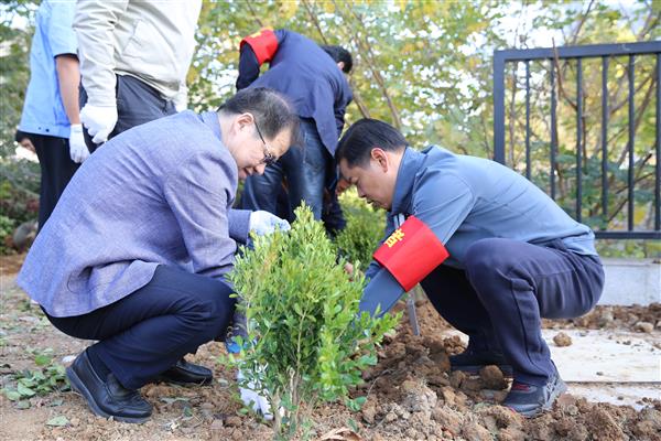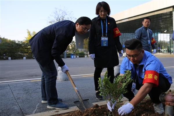 义务植树添新绿,齐心协力美国博。为深入推进“不忘初心、牢记使命”主题教育,让党员悟初心、守初心、践初心,11月15日,会展公司党支部组织开展“主题教育找差距、志愿服务抓落实”绿化志愿活动。集团党委书记、董事长侯峻,集团党委委员、副总经理吕道峰同会展公司全体党员一道身体力行地参与了志愿服务。