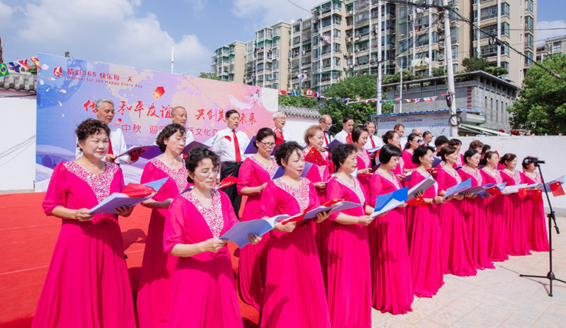 随后,由社区党员居民群众和国际友人自编自导,为大家呈现了一场精彩纷呈的文艺演出。有古色古香的旗袍走秀《弯弯的月亮》,有舞姿灵动舞蹈表演《望月》《再唱山歌给党听》,有热烈奔放的二胡独奏《赛马》···还有国际友人带来的诗朗诵《Never forget》、太极剑等,好不热闹。