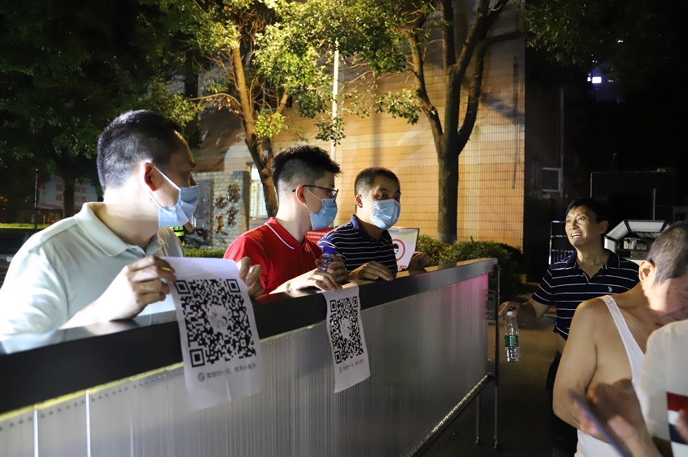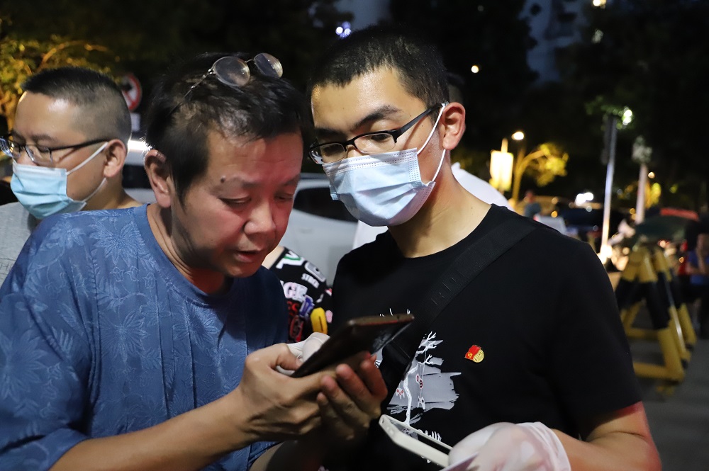 社区是阻击疫情的主阵地、落实责任的最前沿。晚上7点,由河西管委会党组成员、副主任、机关党委书记陈洁同志带队,管委会首批党员先锋队准时到达建邺区南苑街道国泰民安社区和健园社区的核酸检测点,做好个人防护后,党员们随即开始工作。“今天可以正常检测”、“拿出手机扫码登记信息”、“没有智能手机的老人请前往人工处操作”、“现在人不多赶紧过来排队”···核酸检测点的一声声贴心引导、一句句暖心回复,将“从群众中来、到群众中去”诠释得淋漓尽致。