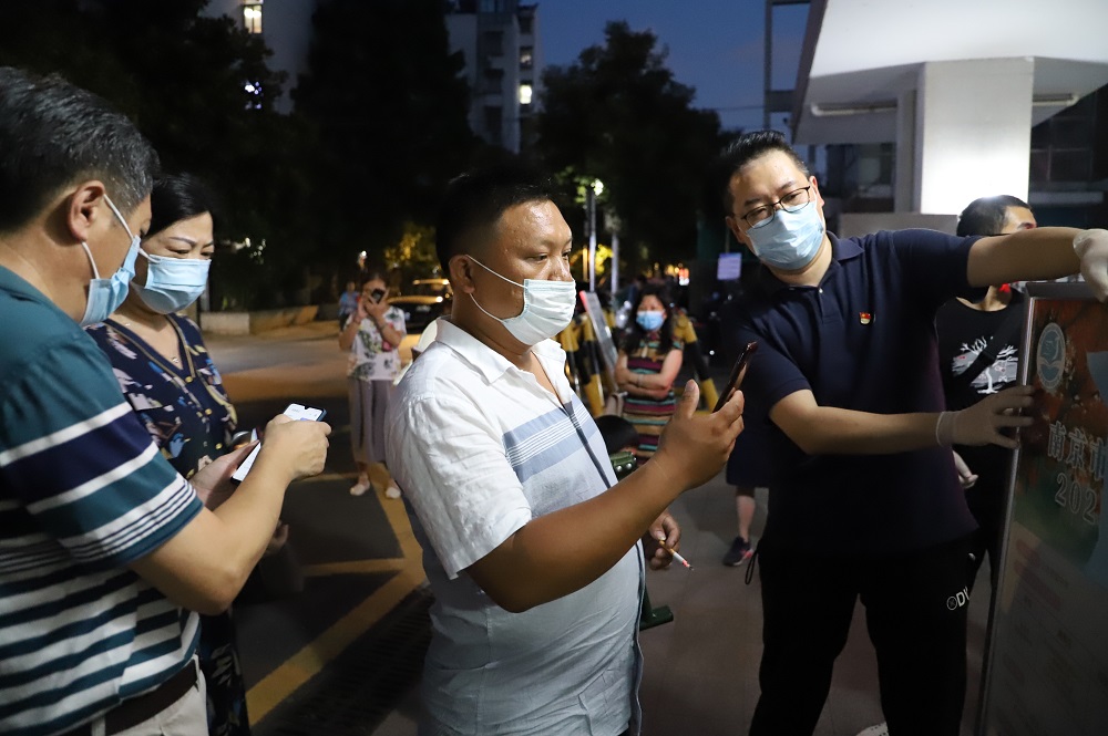 此次全员核酸检测工作时间紧、任务重、要求高。7月22日下午接到协助建邺区核酸检测任务后,河西管委会及时响应、快速行动,由机关党委牵头、各支部具体落实,当即成立了首批由10名年轻党员组成的党员先锋队。当晚6点半,管委会召开志愿服务动员会,强调此次核酸检测志愿服务的关键性和重要性,并要求大家在“不给一线添乱”的原则上,力所能及地协助社区做好核酸检测各项工作,在这个过程中,也要做好自身防护和防暑降温工作。