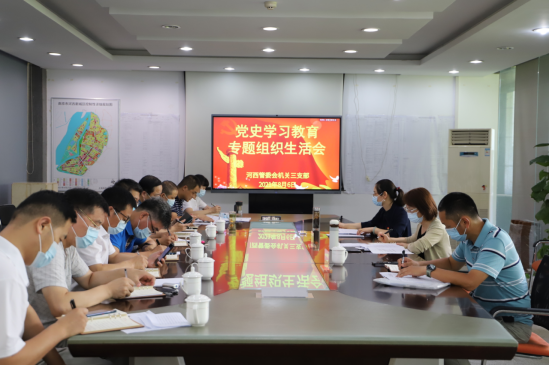 为认真贯彻“学史明理、学史增信、学史崇德、学史力行”工作要求,8月6日下午,河西管委会机关三支部围绕“学党史、悟思想、办实事、开新局”主题召开党史学习教育专题组织生活会。会议由支部书记马莉同志主持,管委会党组成员、副主任蔡国峻以普通党员身份参加会议,市委党史学习教育第十二指导组成员祖伯康列席会议。